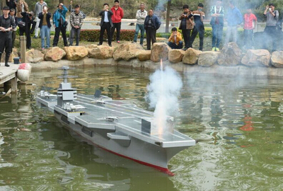 河南省航海運動站教練員侯偉介紹,這個航母模型為目前國內(nèi)能下水航行的最大的航母模型,采用電力驅(qū)動,連續(xù)航行能達2小時,耗資10多萬元,歷時2年,首次試水成功,模擬導(dǎo)彈發(fā)射和飛機起降,均獲得成功。